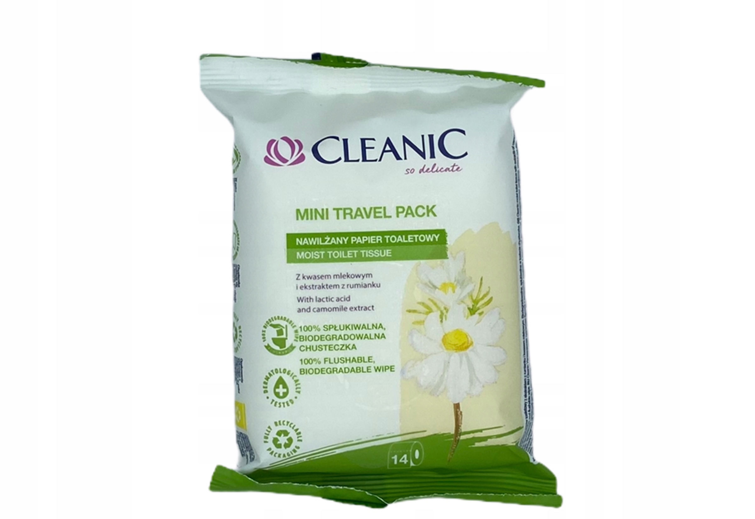 CLEANIC nawilżany papier toaletowy z ekstraktem z rumianku Mini Travel Pack 14szt