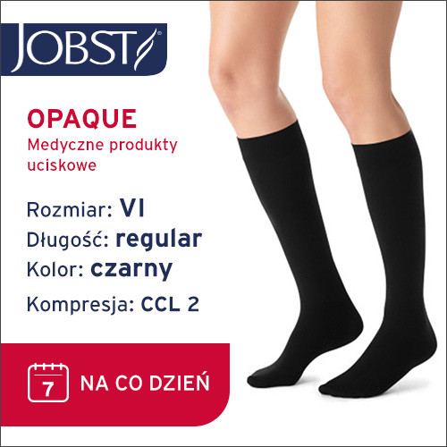 JOBST Opaque to kryjące, medyczne podkolanówki uciskowe stworzone do codziennego noszenia, łączące skuteczną kompresjoterapię z eleganckim, uniwersalnym wyglądem. Czarny kolor sprawia, że doskonale komponują się zarówno ze strojem codziennym, jak i bardziej formalnym.