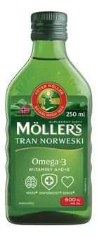 Möller’s Tran Norweski o aromacie naturalnym– najwyższej jakości, oryginalny tran z Norwegii. Stanowi uzupełnienie codziennej diety w nienasycone kwasy tłuszczowe omega-3 oraz witaminy D3, A i E. To najchętniej wybierane trany w Polsce przez mamy.