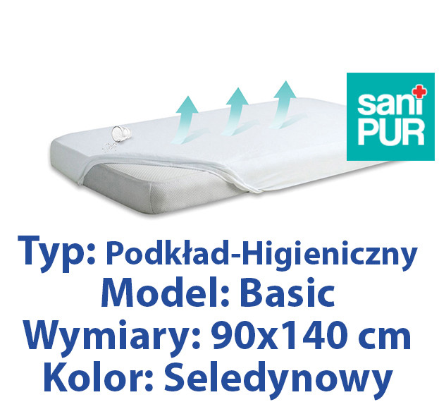 SANIPUR Podkład higieniczny- BASIC, Seledynowy, 90x140 cm, frotte podgumowany, nieprzemakalny, bez ftalanów (TS0104_0533)