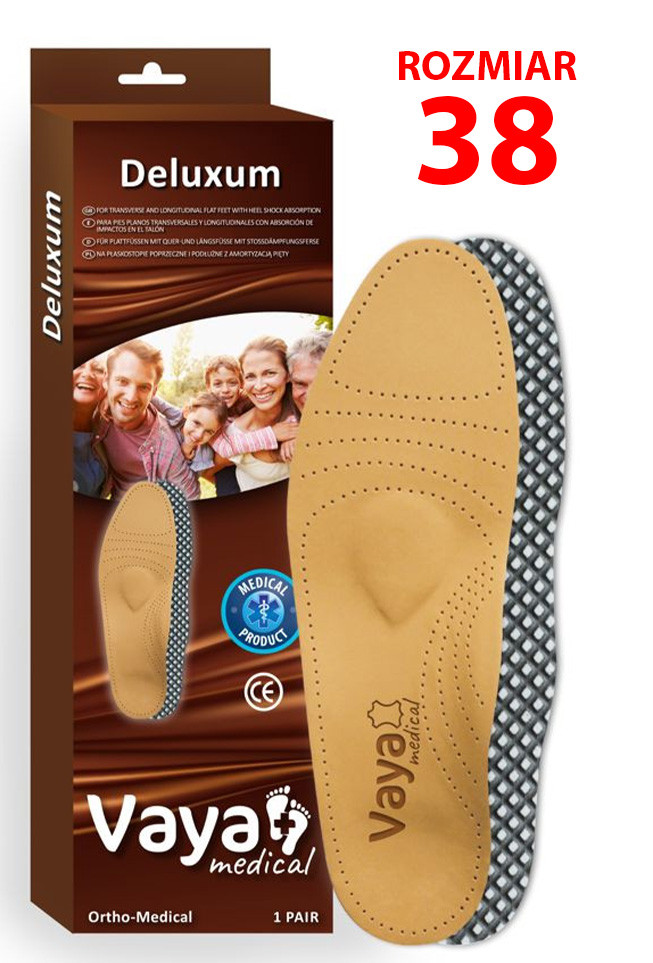 Vaya Deluxum Pełne wkładki ortopedyczne na płaskostopie poprzeczne i podłużne z amortyzacją pięty rozm. 38
