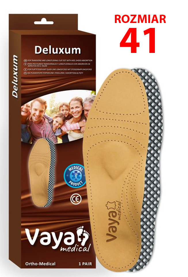 Vaya Deluxum Pełne wkładki ortopedyczne na płaskostopie poprzeczne i podłużne z amortyzacją pięty rozm. 41