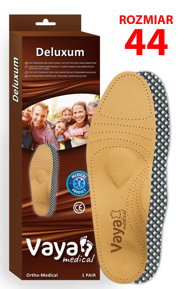 Vaya Deluxum Pełne wkładki ortopedyczne na płaskostopie poprzeczne i podłużne z amortyzacją pięty rozm. 44