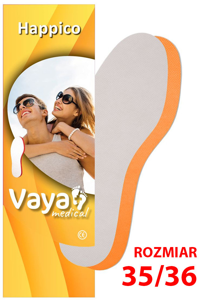 Letnie wkładki do butów Vaya Happico mają właściwości przeciwpotne. Każda wkładka jest bardzo cienka - ma tylko 2 mm grubości, ale dzięki swojej zaawansowanej technologicznie budowie posiada aż 6 warstw. Każda warstwa pełni unikalną funkcję zapewniając świeżość, komfort i higienę do jednego tygodnia stosowania wkładki. Vaya Happico są idealne dla bosych stóp, sprawdzają się w obuwiu sportowym, trampkach czy tenisówkach. Jeden pakiet pozwala na świeżość i higienę przez osiem tygodni.