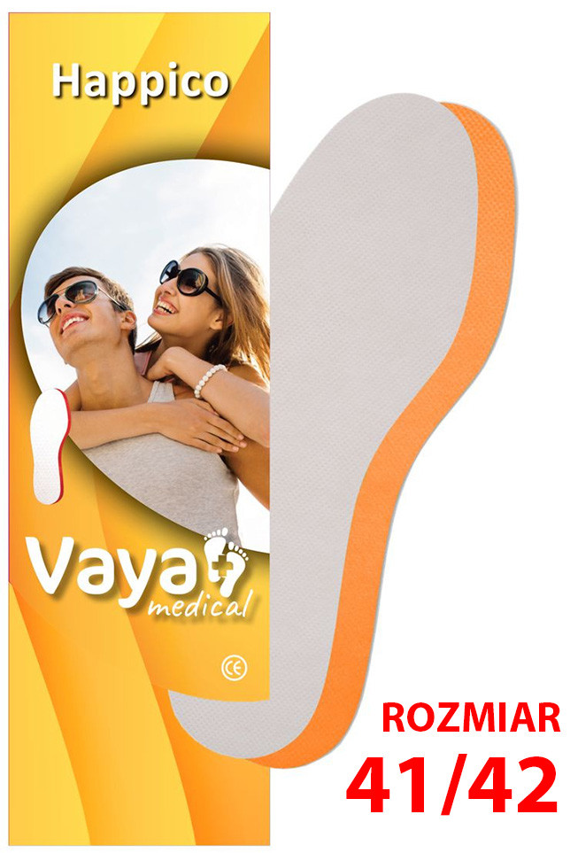 Letnie wkładki do butów Vaya Happico mają właściwości przeciwpotne. Każda wkładka jest bardzo cienka - ma tylko 2 mm grubości, ale dzięki swojej zaawansowanej technologicznie budowie posiada aż 6 warstw. Każda warstwa pełni unikalną funkcję zapewniając świeżość, komfort i higienę do jednego tygodnia stosowania wkładki. Vaya Happico są idealne dla bosych stóp, sprawdzają się w obuwiu sportowym, trampkach czy tenisówkach. Jeden pakiet pozwala na świeżość i higienę przez osiem tygodni.