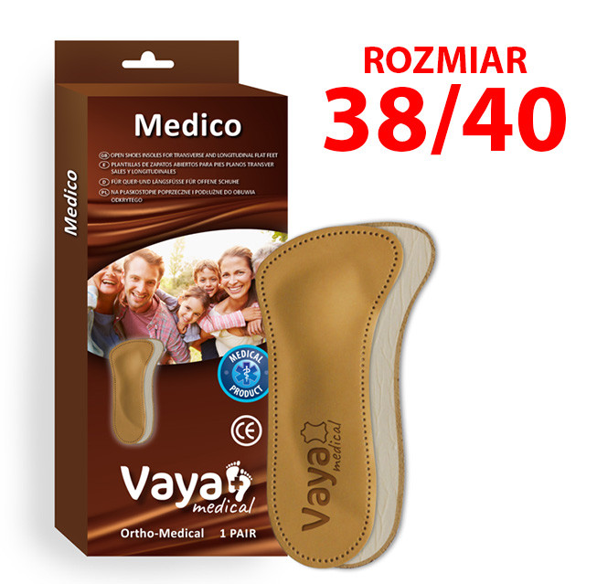 VAYA MEDICO Wkładki ortopedyczne 3/4 na płaskostopie poprzeczne i podłużne do obuwia odkrytego '38/40