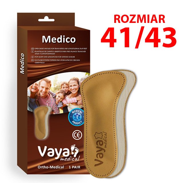VAYA MEDICO Wkładki ortopedyczne 3/4 na płaskostopie poprzeczne i podłużne do obuwia odkrytego '41/43