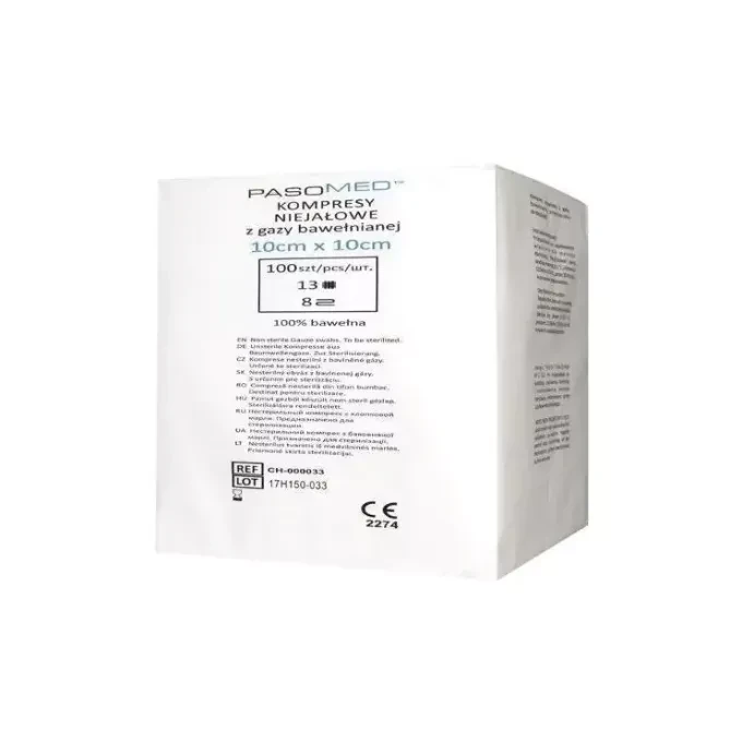PASOMED Kompresy niejałowe 13-nitkowe 8 warstwowe 10cm x 10cm 100szt