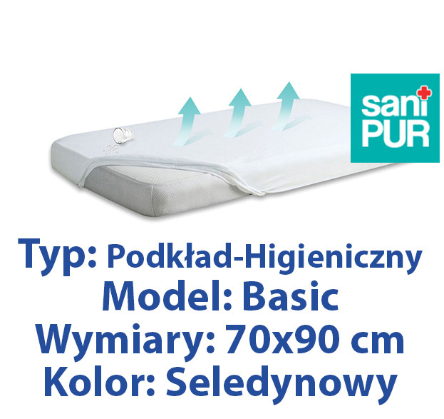 SANIPUR Podkład higieniczny- BASIC, Seledynowy, 70x90 cm, frotte podgumowany, nieprzemakalny, bez ftalanów (TS0104_0333)