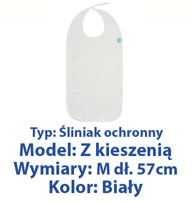 SANIPUR Śliniak ochronny z kieszenią, Biały, frotte roz. M dł. 57cm (TS0802_02)