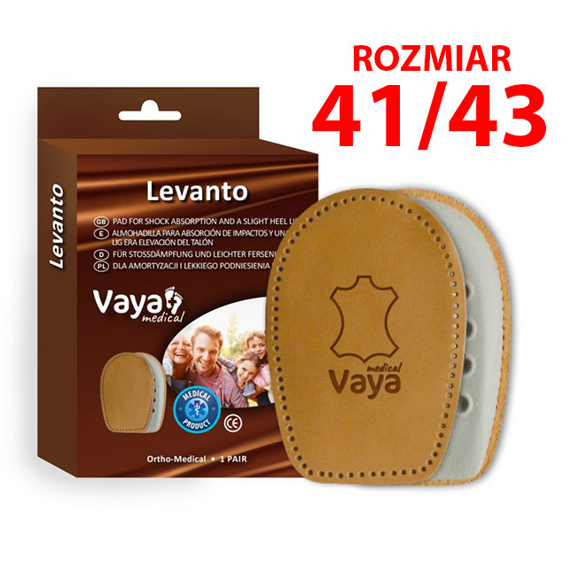 Wkładki ortopedyczne Vaya Levanto to skórzane podpiętki wielokrotnego użycia, które zapewniają komfort stopom wymagającym amortyzacji oraz lekkiego podniesienia pięt. Wkładka redukuje mikro wstrząsy podczas chodzenia po twardym podłożu. Jeśli masz problem z bólem pięt, to proponowane wkładki Levanto będą dla Ciebie doskonałym rozwiązaniem. Redukują nacisk kości pięty na podłoże, lekko unoszą i amortyzują piętę. Vaya Levanto są produktami kontynuującymi tradycje wkładek Scholl.