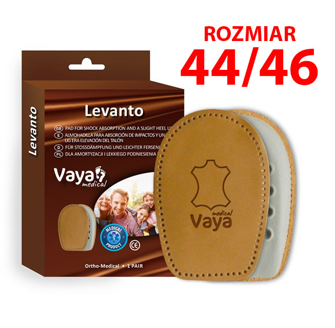 Wkładki ortopedyczne Vaya Levanto to skórzane podpiętki wielokrotnego użycia, które zapewniają komfort stopom wymagającym amortyzacji oraz lekkiego podniesienia pięt. Wkładka redukuje mikro wstrząsy podczas chodzenia po twardym podłożu. Jeśli masz problem z bólem pięt, to proponowane wkładki Levanto będą dla Ciebie doskonałym rozwiązaniem. Redukują nacisk kości pięty na podłoże, lekko unoszą i amortyzują piętę. Vaya Levanto są produktami kontynuującymi tradycje wkładek Scholl.